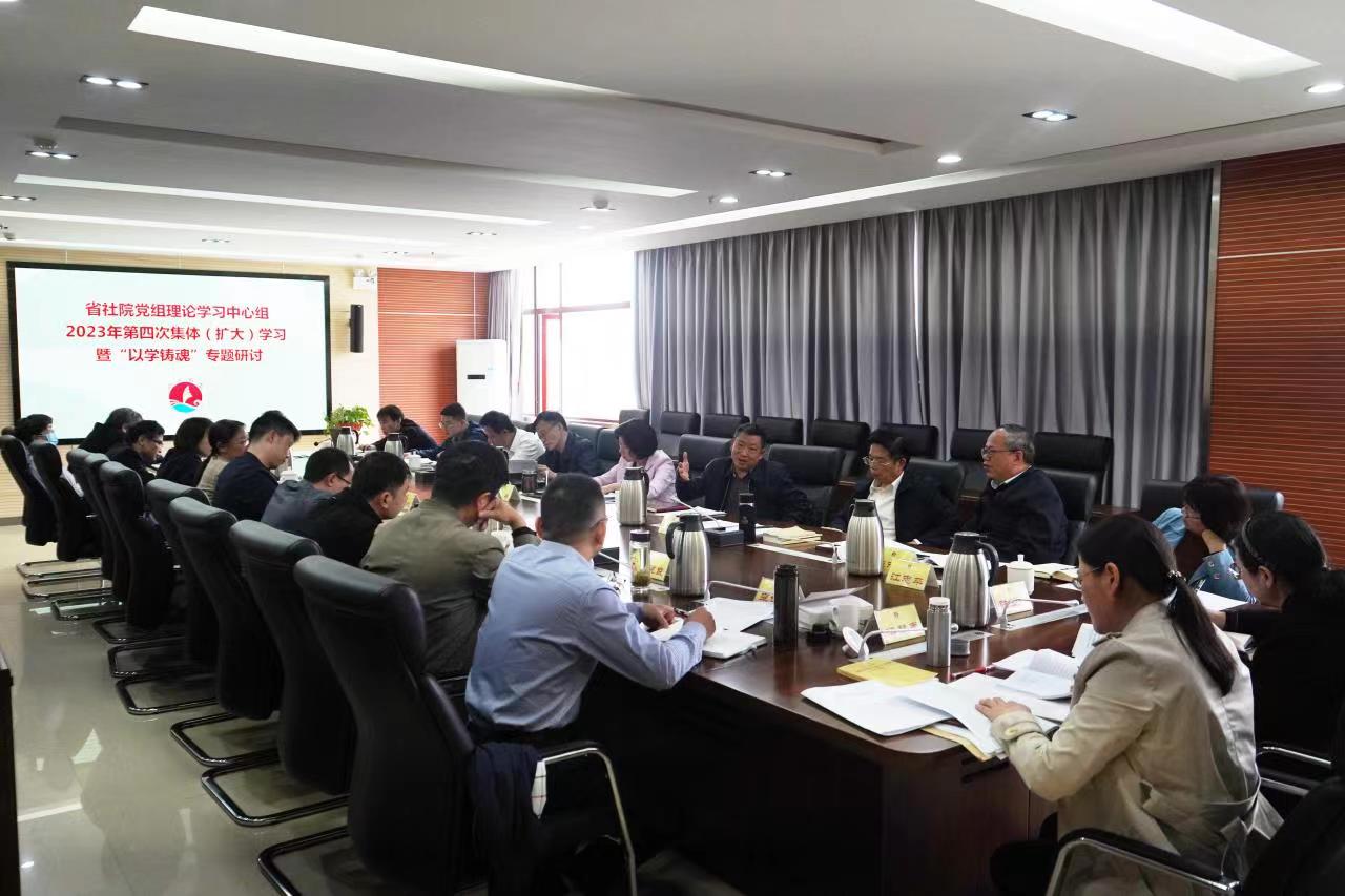4月28日上午,省社院举行党组理论学习中心组2023年第四次集体(扩大)学习暨“以学铸魂”专题研讨。学院副院长、院党组成员彭英主持会议并带头作研讨发言,省委主题教育巡回指导组第七组副组长陈永实到会指导,在家中心组成员,处级以上干部、副高以上教师参加学习。
