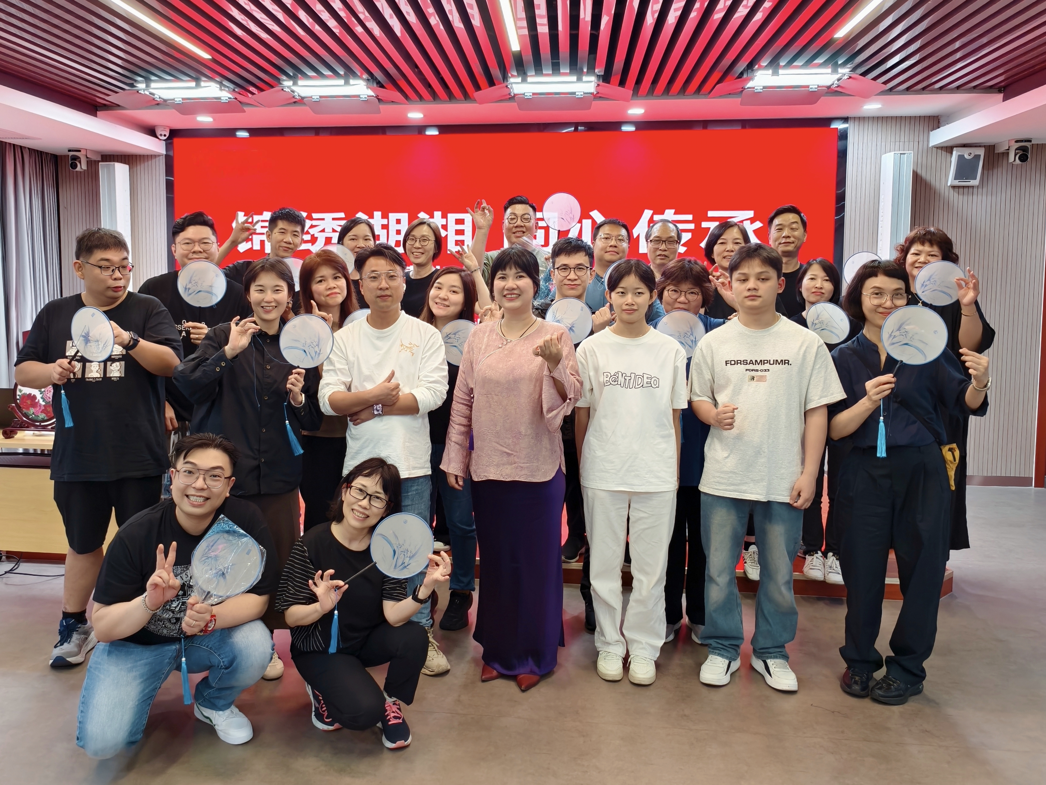 香港学员们展示湘绣作品