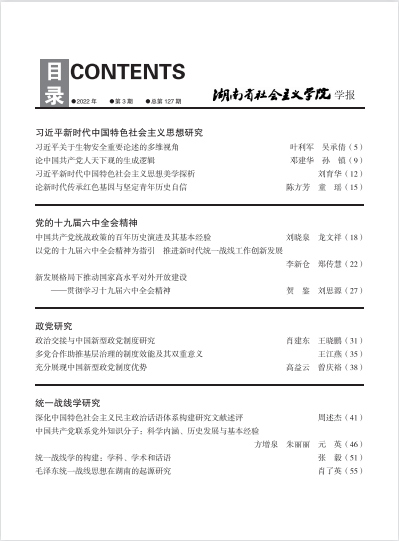 湖南社院学报2022年第3期封面及目录
