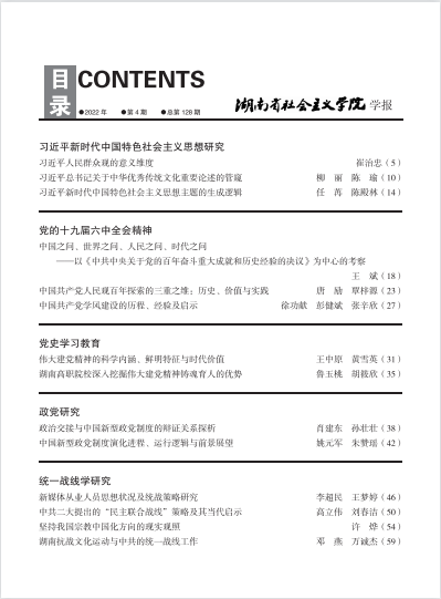 湖南社院学报2022年第4期封面及目录